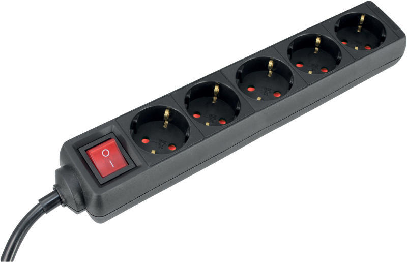 Elosztó 5-dugaljas 16 A 250 V ~ 3500 W , kapcsolóval, fekete