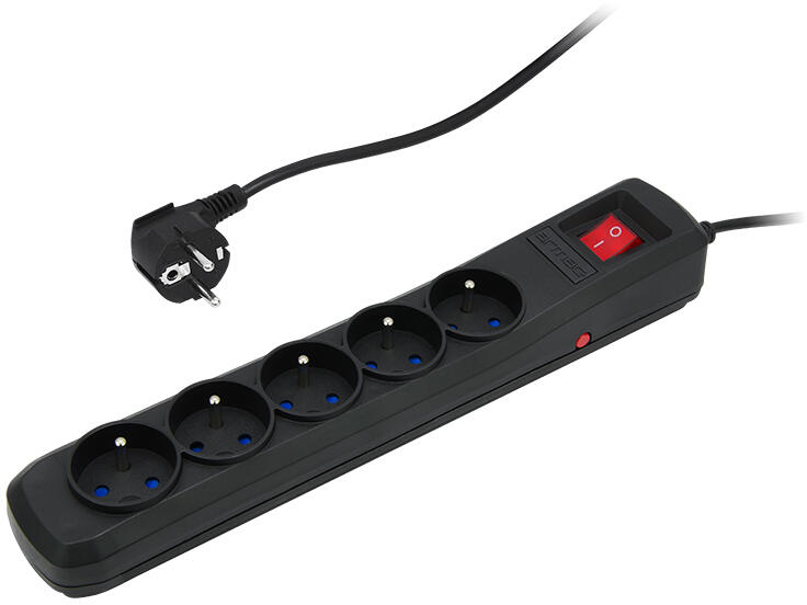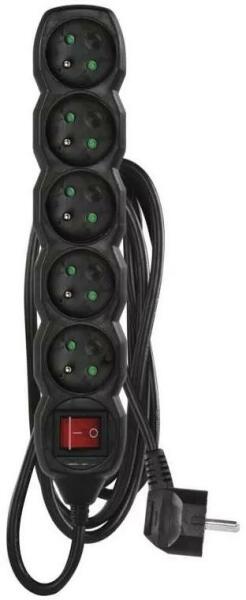Specifikáció: - Névleges feszültség: feszültség: ~230V, 50Hz- Maximális terhelés: (2500W MAX): ∑10A (2500W MAX)- Névleges áram: 10A- Kapcsoló: 2 pólusú, megvilágított- Védelem: automatikus biztosíték- Ház: önkioltó műanyag- Aljzatok száma: 5- Kábelhossz: 5m- Földelés az aljzatokban: IGEN- Hálózati dugó: ferde- Szín: fekete- Maximális impulzusáram: 6000 A (8/10μs