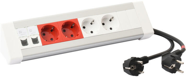 IncaraTM On Desk asztali elosztósor - Reteszelt (piros) csatlakozóaljzattal Tulajdonságok: Aluminium kivitel 2P+F csatlakozóaljzat: 16 A 250 VA biztonsági zsaluval ellátott 3 méter kábellel és 2P+F csatlakozódugóval felszerelt (H05VVF, 3x1.5 mm2) Megfelel az IEC 60884-1 szabványnak Max. 3680 W - 230 VA Felszereltsége: 2 x 2P+F csatlakozóaljzat 2 x 2P+F reteszelt csatlakozóaljzat (pi