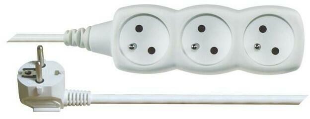 Hosszabbító kábel – 3 dugalj, 2m, fehér2m-es 230 V~ hosszabbító kábel, amellyel konnektortól távoli helyeken is megoldható az áramellátás. Technikai paraméterek:szigetelés típusa: PVCmax. terhelés: 2 300 Wvezeték: H05VV-F3G 1 mm?feszültség/áram: 250 V~/10 A max. gyerekzár: igendugalj és dugvilla anyaga: műanyaghossz: 2 mdugalj-szám: 3× 2P + PEszín: fehércsomagolás: 1