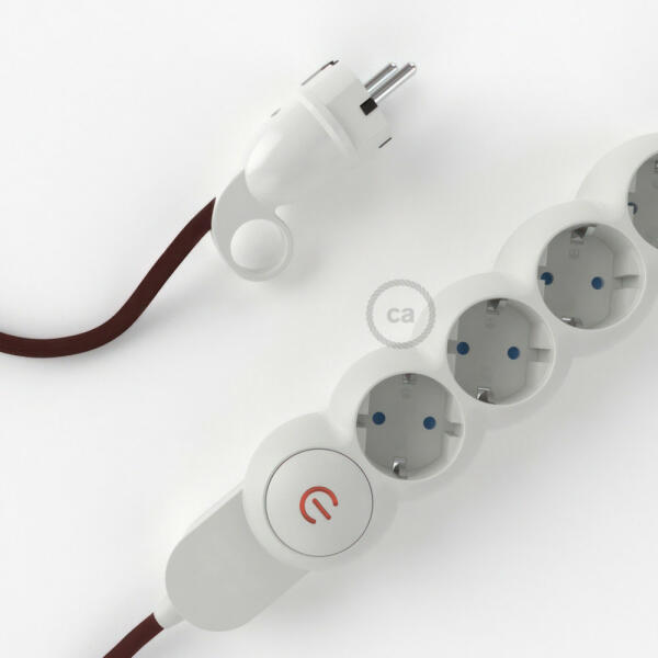 A műselyem bordó RM19 Creative-Cables szövettel borított elektromos kábellel ellátott elosztó nem a szokásos többszörös aljzat! A 4 Schuko/10A aljzat átlósan van elhelyezve a transzformátorok által elfoglalt hely optimalizálása érdekében. A nagy keresztmetszetű kábel (1,5 mm2) 100%-ban Olaszországban készült. A schuko dugó kényelmes gyűrűvel van ellátva, amely nagyon m