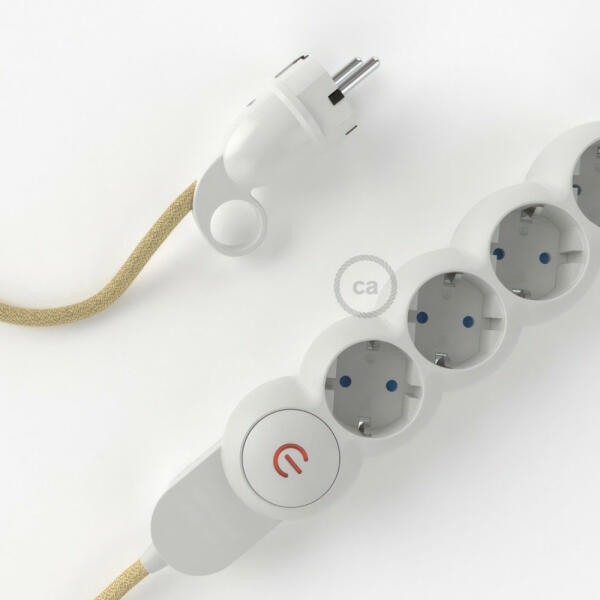 A Jute RN06 Creative-Cables borítású elektromos kábellel ellátott elosztó nem a szokásos többszörös aljzat! A 4 Schuko/10A aljzat átlósan van elhelyezve a transzformátorok által elfoglalt hely optimalizálása érdekében. A nagy keresztmetszetű kábel (1,5 mm2) 100%-ban Olaszországban készült. A schuko dugó kényelmes gyűrűvel van ellátva, amely nagyon megkönnyíti a csatla