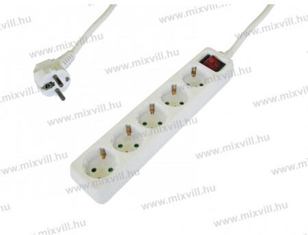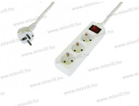 Kábel hossza: 5m Vezeték-keresztmetszet: 3x1,5mm2 Kapcsolóval Színe: fehér Dugvilla típus: Uniscuko Földeléssel Gyerekvédelemmel Imax: 16A Kábel típusa: H05VV-F