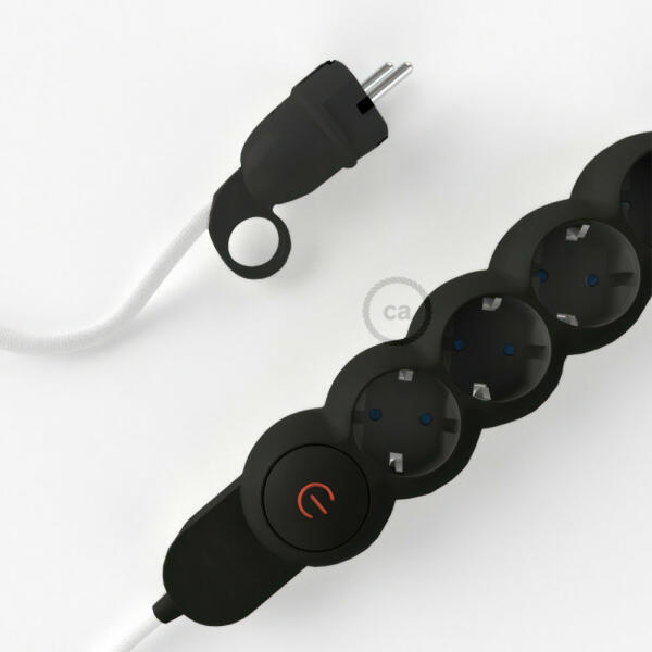 A fehér szövet RM01 Creative-Cables műselyemborítású elektromos kábellel ellátott elosztó nem a szokásos többszörös aljzat! A 4 Schuko/10A aljzat átlósan van elhelyezve a transzformátorok által elfoglalt hely optimalizálása érdekében. A nagy keresztmetszetű kábel (1,5 mm2) 100%-ban Olaszországban készült. A schuko dugó kényelmes gyűrűvel van ellátva, amely nagyon meg
