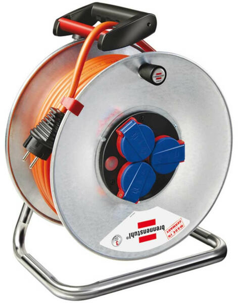 Acéllemezből készült dobtest, rozsdavédelem céljából horganyozva, különösen stabil állványonErgonómiai szempontok szerint tervezett tengelyes fogantyú a tökéletes kábelmegvezetéshez a le- és a feltekercselés soránTúlhevülés elleni védelem, ellenőrző lámpa túlhevülés vagy túlterhelés eseténGumidugasz, 3 dugaszoló aljzat önzáró fedéllel