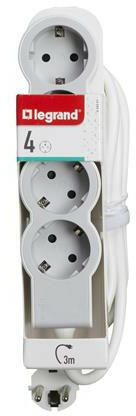 Elosztósor, 4 csatlakozóaljzat, 3 m kábelhosszúság, LEGRAND Standard, fehér-szürke A Legrand elosztósorait stílusos, letisztult desing-al alkották meg. -süllyesztett dugaljak 45°-os szögben helyezkednek el (kivéve az egyik, amely 90°-ban elforgatva helyezkedik el) -UV álló, halogén mentes anyaghasználat -4 db konnektor -3 m kábel