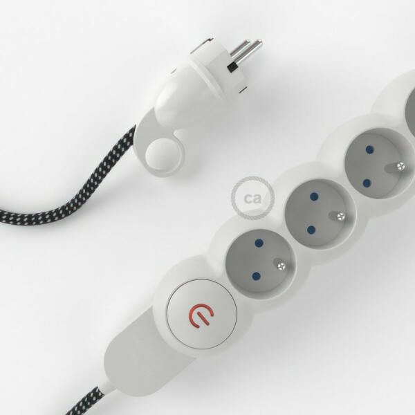 Az RT41 Stars Creative-Cables 3D hatású szövettel bevont elektromos kábellel ellátott elosztó nem a szokásos többszörös aljzat! A 4 Schuko/10A aljzat átlósan helyezkedik el a a transzformátorok által elfoglalt hely optimalizálása érdekében. A nagy keresztmetszetű kábel (1,5 mm2) 100%-ban Olaszországban készült. A schuko dugó kényelmes gyűrűvel van ellátva, amely nagyon