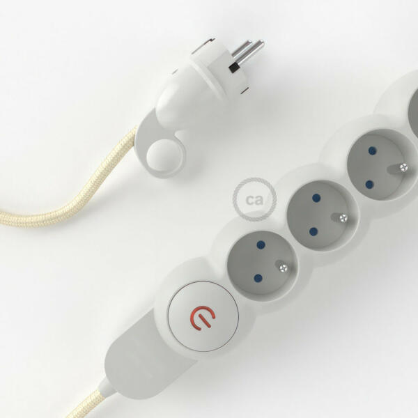 Az RM00 Creative-Cables műselyem Ivory anyaggal borított elektromos kábellel ellátott elosztó nem az Ön szokásos többszörös aljzata! A 4 Schuko/10A aljzat átlósan, sorrendben van elhelyezve hogy optimalizáljuk a transzformátorok által elfoglalt helyet. A nagy keresztmetszetű kábel (1,5 mm2) 100%-ban Olaszországban készült. A schuko dugó kényelmes gyűrűvel van ellátva, amel