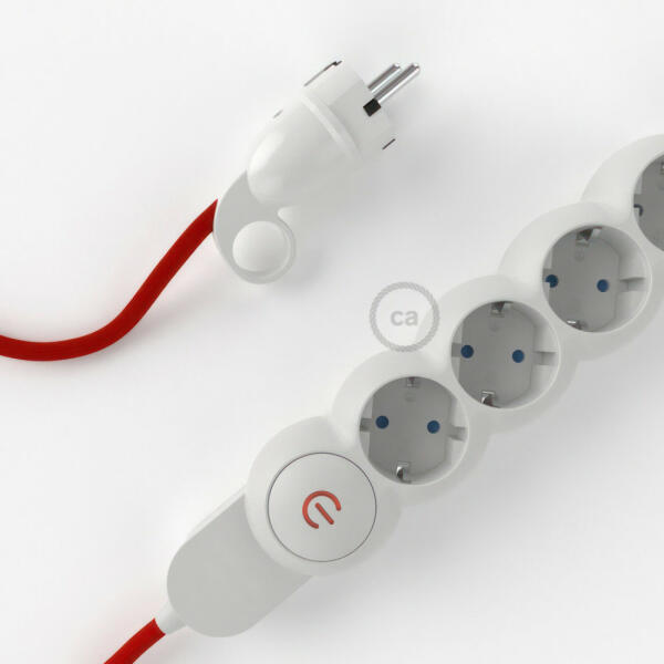 A műselyem RM09 Creative-Cables szövettel bevont elektromos kábellel ellátott elosztó nem az Ön szokásos többszörös aljzata! A 4 Schuko/10A aljzat átlósan van elhelyezve, hogy optimalizálja a transzformátorok által elfoglalt helyet. A nagy keresztmetszetű kábel (1,5 mm2) 100%-ban Olaszországban készült. A schuko dugó kényelmes gyűrűvel van ellátva, amely nagyon megkönnyí
