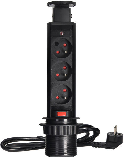 A kihúzható fedélben lévő három darab 2P+E elektromos aljzat biztosítja a hozzáférést az elektromos aljzatokhoz. Kihúzható panellel rendelkezik aljzatokkal, kiegészítő zárral és 1,8 m hosszú kábellel. Íróasztalokba, asztallapokba és irodabútorokba történő beltéri beépítésre tervezték. A készülék asztallapba történő beszereléséhez elegendő egy 6 cm átmérőj