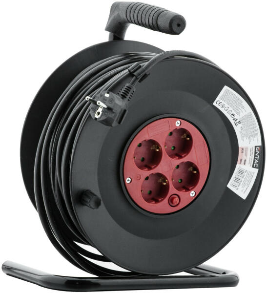 Acéllemezből készült dobtest, rozsdavédelem céljából horganyozva, különösen stabil állványonTúlhevülés-védelemmel ellátvaKönnyen kezelhető és könnyű - kis helyen sok kábelDugasz, 4 csapófedeles dugaszoló aljzat