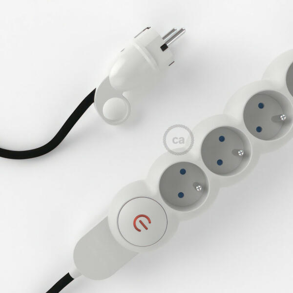 A műselyem Black RM04 Creative-Cables borítású elektromos kábellel ellátott elosztó nem az Ön szokásos többszörös aljzata! A 4 Schuko/10A aljzat átlósan van elhelyezve, hogy optimalizálja a transzformátorok által elfoglalt helyet. A nagy keresztmetszetű kábel (1,5 mm2) 100%-ban Olaszországban készült. A schuko dugó kényelmes gyűrűvel van ellátva, amely nagyon megkönnyí