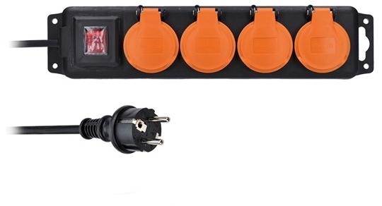 Hosszabbító vezeték IP44 védelemmel a fröccsenő víz ellen. Mind a 4 konnektor felett található lehajtható takaró és egy központi billenőkapcsoló. A gumírozott kábel csak még jobban illusztrálja, hogy készen áll a kültéri használatra. Alkalmas a nyaraló körül való munkákhoz, vagy csak általában a szabadtéri környezetben történő munkavégzéshez. 10 m hosszú káb