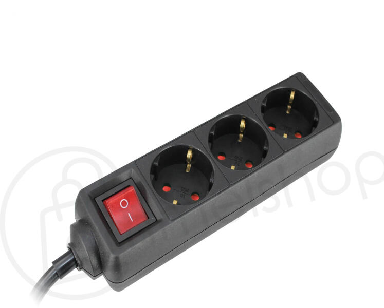 Elosztó 3-dugaljas 16 A 250 V ~ 3500 W , kapcsolóval, fekete