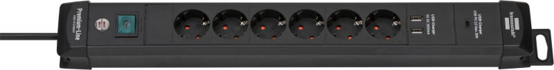 Brennenstuhl Premium-Line hosszabbító kábel, 2xUSB 3100 mA , , 1xUSB-C, 18W, 6 aljzat, Be/Ki gomb, kábel H05VV-F 3G1.5, 3m Elegáns, időtálló, minőségi dizájn. Földelő aljzatok 45°-os elrendezésben, ideális szögletes aljzatokhoz. 2 pólusú biztonsági kapcsoló BE / KI világítással. Intelligens USB tápellátási mód max. 18 W a gyorstöltéshez. 2 db USB töltőaljzat teljes