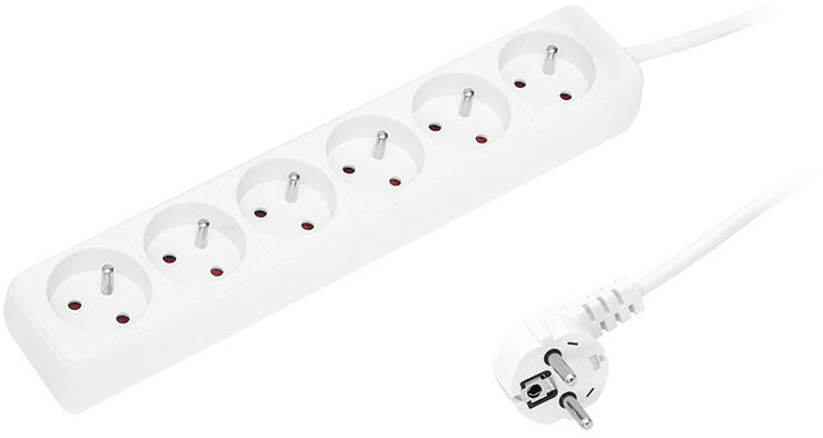 PR-670P hálózati hosszabbító kábel ferde hálózati dugóval és 6 földelt aljzattal. - Modell: PR-670P- Vezetékek: 3 x 1,5 mm- Teljes hossz: 1,5 m- Kábelhossz: 1,3 m- Dugó: hálózati, szögletes- Aljzatok száma: 6- Földelés: igen- Kábel színe: fehér- Csomagolás címkével