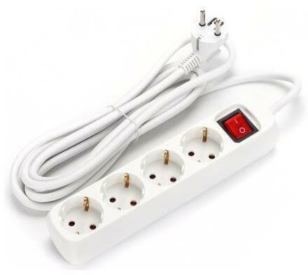 4 csatlakozóaljzattal rendelkező hosszabbító kábel. Hossza: 3 m. Vezeték: H05VV-F 3G1,5 mm2. Kapcsolót tartalmaz. Gyermekvédelem. F típusú foglalat - Schuko. Maximális terhelés: 3680W/16A.