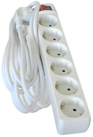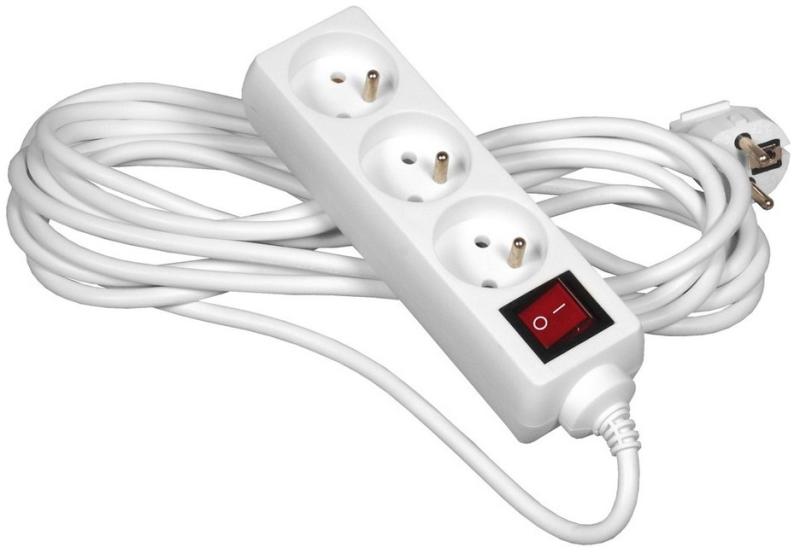 Gyakorlati hosszabbító, 3 fiókos. A kábel központi kapcsoló egyszerű és gyors lekötése a készüléket az elektromos hálózatról. Kábel hossza 5 m. Csomagolva egy zsák egy felfüggesztési rendszer. 250 V max 10A