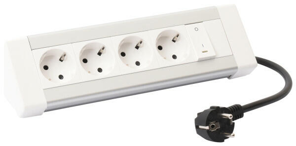 IncaraTM On Desk asztali elosztósor - Jelzőfényes kapcsolóval Tulajdonságok: Aluminium kivitel 2P+F csatlakozóaljzat: 16 A 250 VA biztonsági zsaluval ellátott 3 méter kábellel és 2P+F csatlakozódugóval felszerelt (H05VVF, 3x1.5 mm2) Megfelel az IEC 60884-1 szabványnak Max. 3680 W - 230 VA Felszereltsége: 4 x 2P+F csatlakozóaljzat 1 jelzőfényes kapcsoló Mechanikai jellemzők: Kü