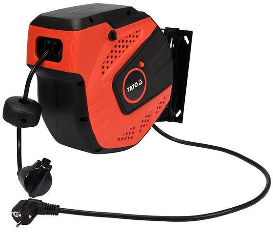 YATO Elektromos hosszabbító kábel automata orsón . Minden műhelyben és gyártóüzemben hasznos. rugalmas, ellenáll a magas és alacsony hőmérsékletnek, nyúlásnak és agresszív vegyszereknek PVC borítású rézhuzalok automata orsós házban kapható, mely jó kábelvédelmet és kényelmes használatot biztosít könnyen rögzíthető munkaasztalra vagy falra a 4 mellékelt horgony