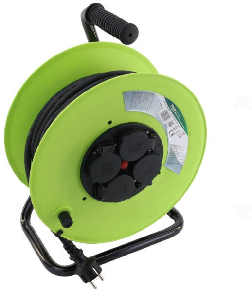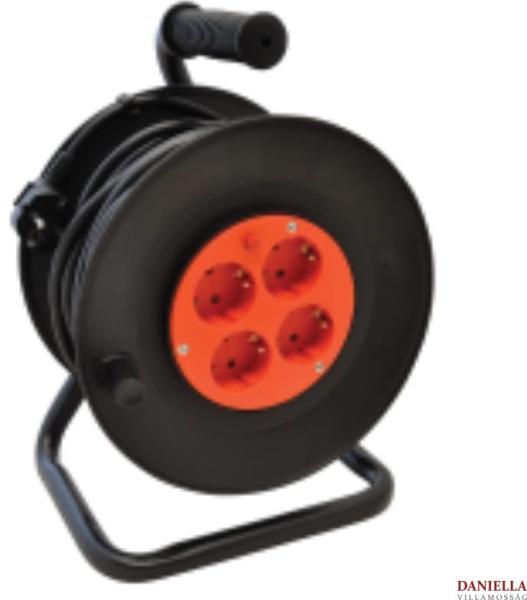 2 pólusú fém kábeldob fém tartóval IP44 20fm H07RN-F 3x1,5mm2 4x2P+F KDZ-4/20G Tracon