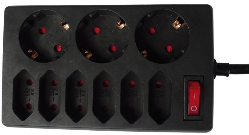 Legrand Standard elosztósor Az elosztósor kábelezése: Kábel méretek: 3 x 1.5 mm2 Kábel hossz: 1,5m Tulajdonságok: A süllyesztett dugaljak 45°-os szögben elforgatva (kivéve egy esetben, mely 90°-ban elforgatott) annak érdekében, hogy a csatlakozódugók egymástól zavartalanul csatlakoztathatóak legyenek az aljzatokba Vékonyított kialakítás 6db konnektor (6 x 2P+F) Fekete/Söt