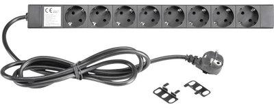 19"-os hálózati elosztó 1 U, hátlapon 8 x földelt aljzat, előlapon kapcsoló, fekete Hálózati elosztó 19"/1 U 250V, 16 A Az előlapon 2 pólusú, világító kapcsoló A hátlapon 8 darab hálózati aljzat Fekete alumínium ház 54 mm mély 19"-os rögzítő fül négy pozícióba szerelhető Általános adatok Terméktípus: 19-os rack hálózati elosztó sor Típus: 19 1U Kimenetek szá