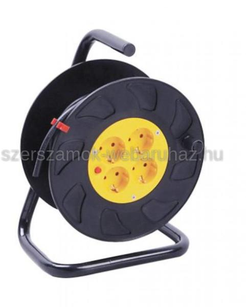 Z-TOOLS kábeldob fém, gumi szigetelt kábellel 50m 3x1,5 230V IP44 az iSzerszámnál. Z-TOOLS kábeldob fém, gumi szigetelt kábellel 50m 3x1,5 230V IP44. Csatlakozó: 250V, 16A. Aljzatok: Csapfedeles 4 db védőérintkezős 250V, 16A. Max. áramerősség: 16A. Névleges feszültség: 230V AC, 50Hz. Terhelés: 1100W/3200W (fel/letekerve). Vezeték típus: H05RR-F3G1,5mm2 gumi szigetelésű káb