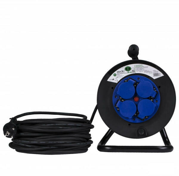 Jellemzők: száraz helyiségekben történő alkalmazáshoz Termikus megszakítóval, amely kiold, ha a kábel hőmérséklete túl magas Névleges feszültség: 230 volt Áramterhelhetőség (feltekerve): max. 4,3 amper Áramterhelhetőség (letekerve): max. 13 amper Teljesítmény (feltekerve): max. 1000 watt Teljesítmény (letekerve): max. 3000 watt Csatlakozóaljzatok száma: 4 x védőérin