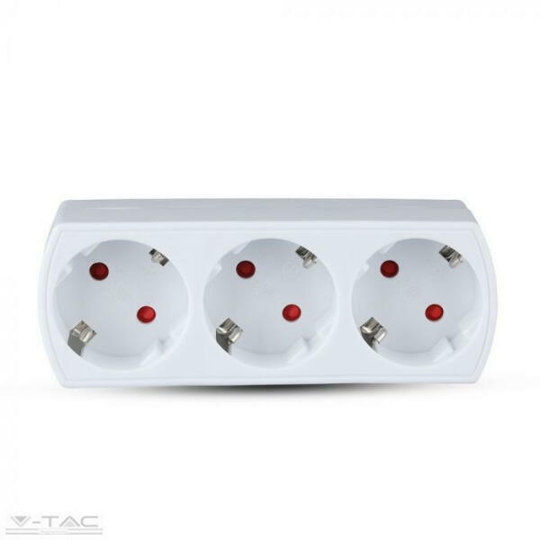 Hármas, fali elosztó, fehér színben Gyermekvédelemmel ellátott, 3 teljes értékű konnektorral, beltéri használatra. Áramerősség: 3x16ASegítségével könnyedén csatlakoztathatjuk hálózati áramforráshoz elektromos készülékeinket legyen szó adapterekről, konyhai eszközökről, televízióról stb.