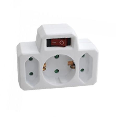 Három konnektorral ellátott fali elosztó kapcsolóval Kapcsolóval ellátott kettes elosztó dugalj. 1 földelt és 2 EURO csatlakozóval. Kimeneti áramerősség: 16A, és 2x2,5A. A kapcsolóval ellátott hálózati aljzat IP20 védettségű, csak beltérben használható!