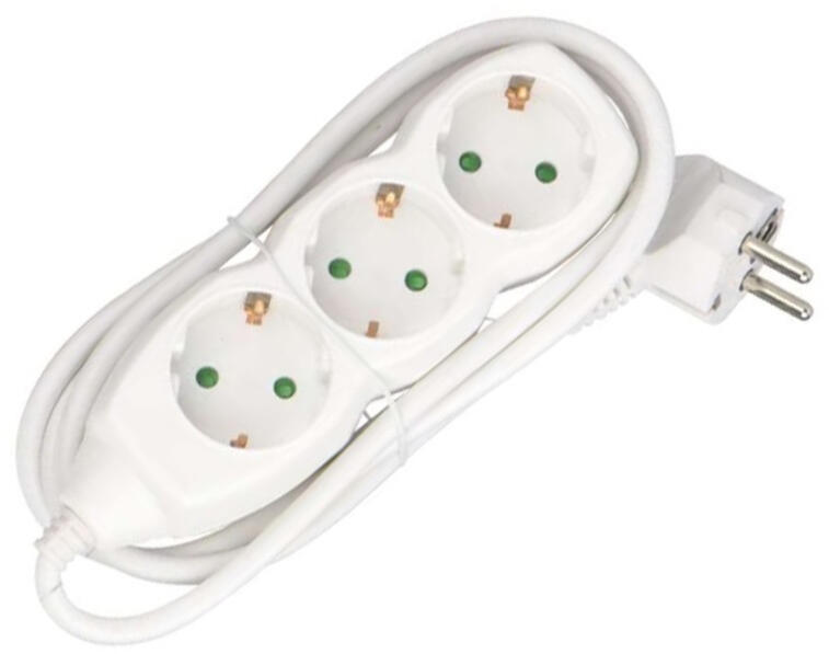 Beltéri hosszabbító, elosztó három csatlakozó aljzattal 3m hosszú kábellel. Kábel: H05VV-F 3G 1,5mm2 Fehér 3-as elosztó Katalóguskód: 9195