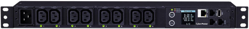 CyberPower PDU81005 Ideális adatközpontok és vállalati alkalmazások számára. Az egyedi kimeneti szinten kapcsolt mérővel ellátott PDU-k sorozata áramelosztó egységek az egyes kimenetek felügyeletére és vezérlésére távoli újraindítások, valós idejű ütemezett be- és kikapcsolás és egyéb alkalmazások céljából. A digitális LCD-kijelző működés közben eltávolíth