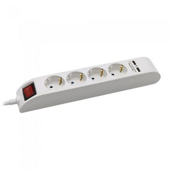 Hálózati elosztó, elegáns fehér színben 1.4 méter hosszú vezetékkel, kapcsológombbal ellátott hosszabbító-elosztó, 4 földelt 230 V-os konnektorral és 2 USB csatlakozóval, beltéri használatra. 3 eres, 1,5 mm2 keresztmetszetű vezetékkel!Bemeneti és kimeneti áramerősség: 16A.