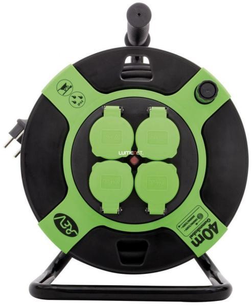 A GAO kültéri kábeldob 4 dugalj 3x1,5mm2 40m kábel 250V 16A IP44 hőkioldóval, a legtöbb háztartási fogyasztóval elbír, 3000W-os teljesítményével megfelelő áramellátást biztosít a fali aljzattól akár 40 méteres távolságban is. A dob védettsége IP44 csapadék, víz ellen mérsékelten védett. Feltekert állapotban maximum 1000W teljesítményű fogyasztóval terhelhető.