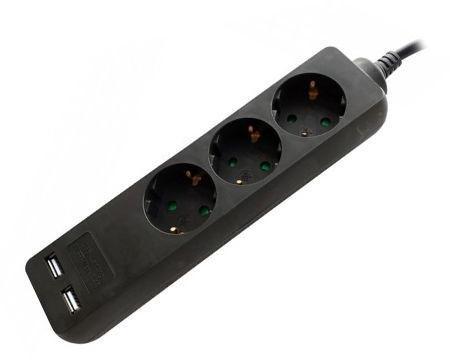 Hálózati elosztó, elegáns fekete színben 1,5 méter hosszú csatlakozóval ellátott hosszabbító-elosztó, 2 földelt 230 V-os konnektorral és 2 USB töltővel-csatlakozóval, beltéri használatra. 3 eres, 1,5 mm2 keresztmetszetű vezetékkel!Bemeneti és kimeneti áramerősség: 16A.