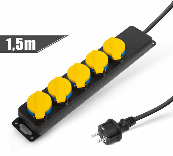 Jellemzők Power Split elektromos hosszabbító, mely bedugott állapotban is használhatóvá teszi a forrás konnektort, 2m hosszúságú 3+1db aljzattal és kapcsolóval , 3x1,5 kábellel, 230V, 16A és 3500W teljesítményig beltéri háztartási használatra. Alkalmas háztartási gépek, konyhai eszközök, barkácsgépek és egyéb elektromos eszközök üzemeltetéséhez a jelzett teljesí