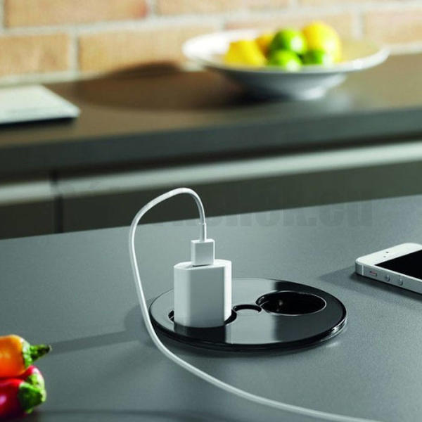 Twist beépíthető konnektor a Bachmanntól. Jó minőségű anyagból készült és 2db földelt dugaljt kapott. A kör alakú rejtett konnektort konyhai munkalapba vagy bármilyen asztallapba be tudjuk építeni . A beépítéshez egy 105mm átmérőjű lyukra van szükségünk a pult alatt pedig 40mm helyet foglal el. Az Inox szálcsiszolt fedele elforgatható, amely segítségével rejthetjü