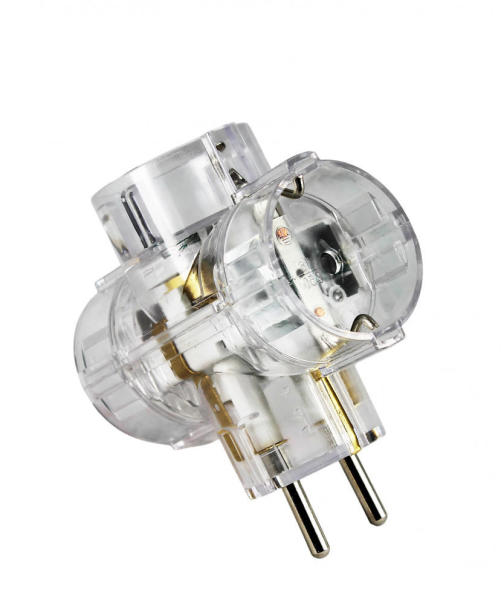 3-as földelt T-elosztó, 250V, 3x16A, átlátszó