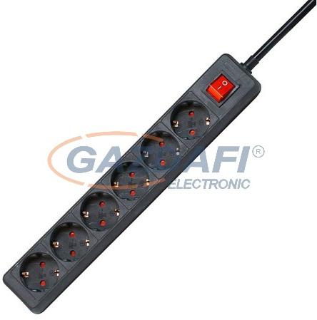 GAO 7118H Asztali elosztó 6-os kapcsolóval, 1.4m, 3x1.5, fekete; 250V, 16A, 1.4m, H05VV-F 3x1.5 mm2, IP20Névleges feszültség: 230V / 16AFényáram: naSzínhőmérséklet (K): naCsatlakozó: 6Kapcsoló: +Vezeték: H05VV-FKiegészítő funkció: naFi reléhez hiba (szivárgási):naIdőkapcsoló esetén vezérlési mód: naIdőkapcsoló időbeállítás: naÉrzékenység/Hatótáv: naIP Védetts