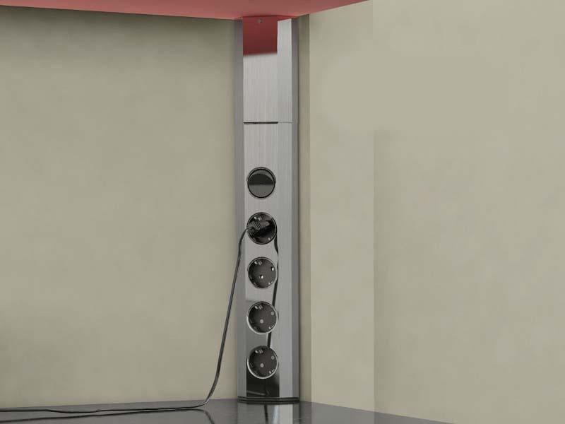 BACHMANN CASIA 923.007 4x230V+kapcsoló sarokba építhető elosztó A BACHMANN CASIA univerzális elosztósorok hatékony megoldást nyújtanak több készülék üzemeltetésére munkahelyi környezetben, konyhában. Modern belső terekben ideális az időtlen megjelenésű szálcsiszolt rozsdamentes acél burkolat, a Bachmann termékekre jellemző elegancia. A Bachmann Casia elosztósor sarokba