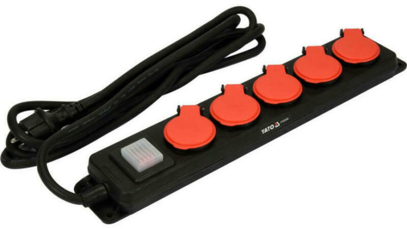 YATO hosszabbító kábel szalag formájában, öt földelt aljzattal. A vastag és tömör kábel neoprén gumi burkolattal azt jelenti, hogy a hosszabbító kábelt beltéren és kültéren is lehet használni, például garázsban, építkezésen, a kertben vagy a gyártóüzemek előtti udvarokon. A szoros és strapabíró ház, valamint a füles formájú aljzatfedelek fröccsenés- és porá