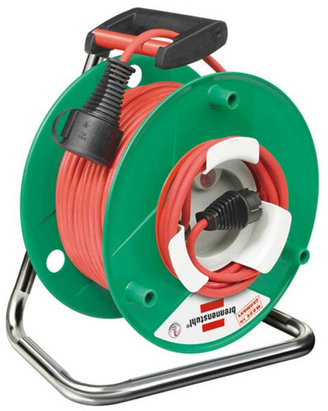 A Bretec komfortos csúszóérintkezővel racionális a munkavégzés A dobtest különleges gumiból készül, és horganyzott állványra van rögzítve Hosszabbító kábeldob dugasszal és csatlakozó aljzattal Ergonómiai szempontok szerint tervezett tengelyes fogantyú a tökéletes kábelmegvezetéshez a le- és a feltekercselés során Túlhevülés elleni védelem, ellenőrző lámpa túl