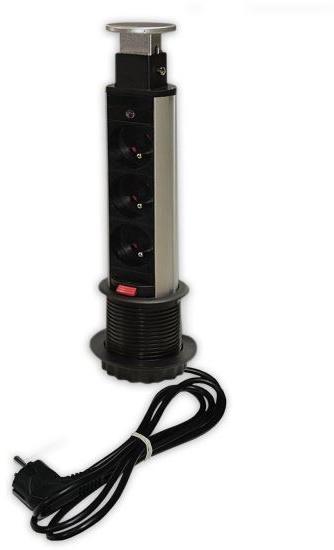Biurkowy przedłużacz wpuszczany 60mm 3x gniazdo z uziemieniem 2xUSB 21a 5V (czarny) GTV AE-BPW3U60U-20