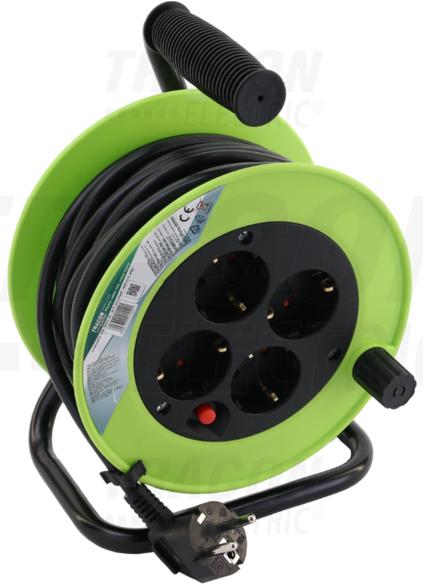Jellemzők: küllső helyiségekben történő rövid idejű alkalmazáshoz idegen testek és fröccsenő víz elleni védelem dugasz és aljzat védőérintkezős kivitelben csatlakozóaljzat zárósapkával Termikus megszakítóval, amely kiold, ha a kábel hőmérséklete túl magas Névleges feszültség: 230 volt Áramterhelhetőség (feltekerve): max. 4,34 amper Áramterhelhetőség (leteker