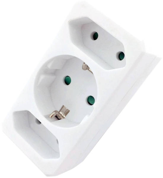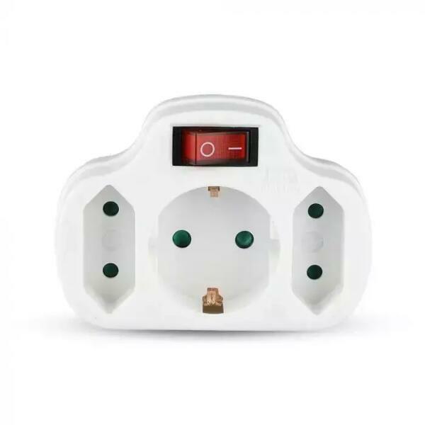 Három konnektorral ellátott fali elosztó kapcsolóval Kapcsolóval ellátott hármas elosztó dugalj. Kimeneti áramerősség: 1x 16A és 2x 2,5A. A kapcsolóval ellátott hálózati aljzat IP20 védettségű, csak beltérben használható!
