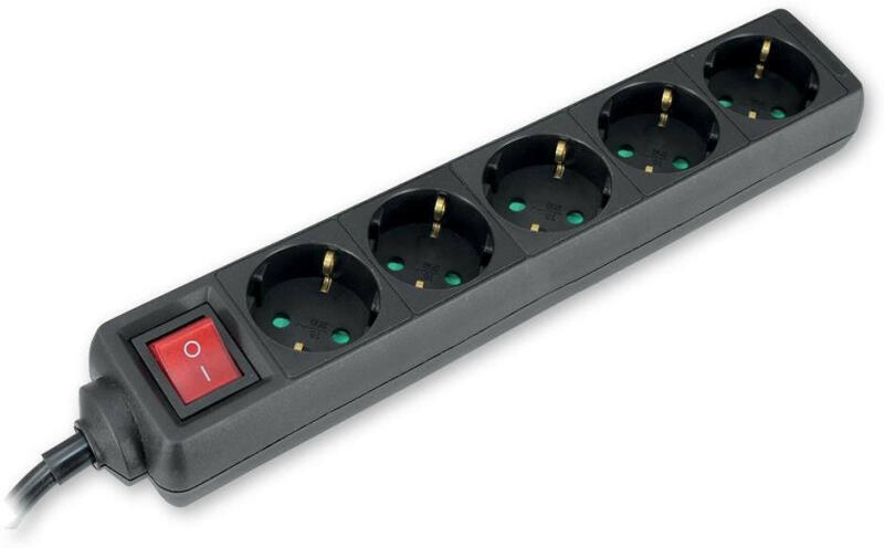 Elosztó 5-dugaljas kapcsolóval 16A 250 V ~ 3500W, fekete