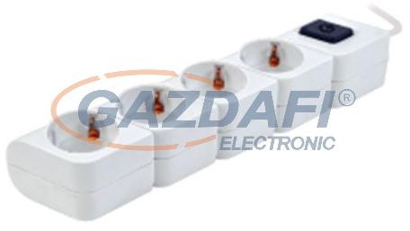 Tracon HKD-4, Hordozható elosztósáv kapcsolóval, fehér 4×SCHUKO, 1,4m, max. 16A, 250VAC, 3680W, 3x1mm2, H05VV-F SCHUKO csatlakozók száma: 4 BE-/KI-kapcsolóval: Igen Túlfeszültség elleni védelem: Nem Névleges áram: 16 A Érkeresztmetszet: 1 mm2 Fedéllel: Nem Anyag: műanyag Szín: fehér Védettség: IP20 Tápvezeték hossza: 1,4 m Elfordított központi beépítés: Nem Elforgatott