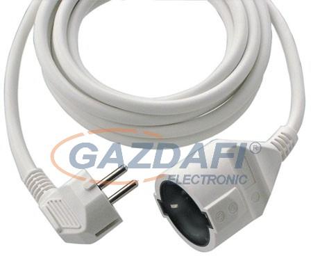 Műanyag hosszabbítókábel lapos dugóval, 10 m, fehér Műszaki adatok: Alkalmazási terület: Beltér · Csatlakozó típus A (illetve bemenetek): Védőérintkezős laposér dugó · Csatlakozó típus B (illetve kimenetek): Védőérintkezős alj · Dugaljak száma: 1 · Dugó kivitel: egyoldalt hajlított · Kábel kivitel: Áram Hosszabbítókábel · Kábel típus DIN/VDE szerint: H05VV-F