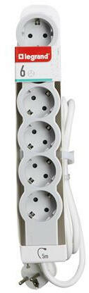 Elosztósor, 6 csatlakozóaljzat, 5 m kábelhosszúság, LEGRAND Standard, fehér-szürke A Legrand elosztósorait stílusos, letisztult desing-al alkották meg. -süllyesztett dugaljak 45°-os szögben helyezkednek el (kivéve az egyik, amely 90°-ban elforgatva helyezkedik el) -UV álló, halogén mentes anyaghasználat -6 db konnektor -5 m kábel
